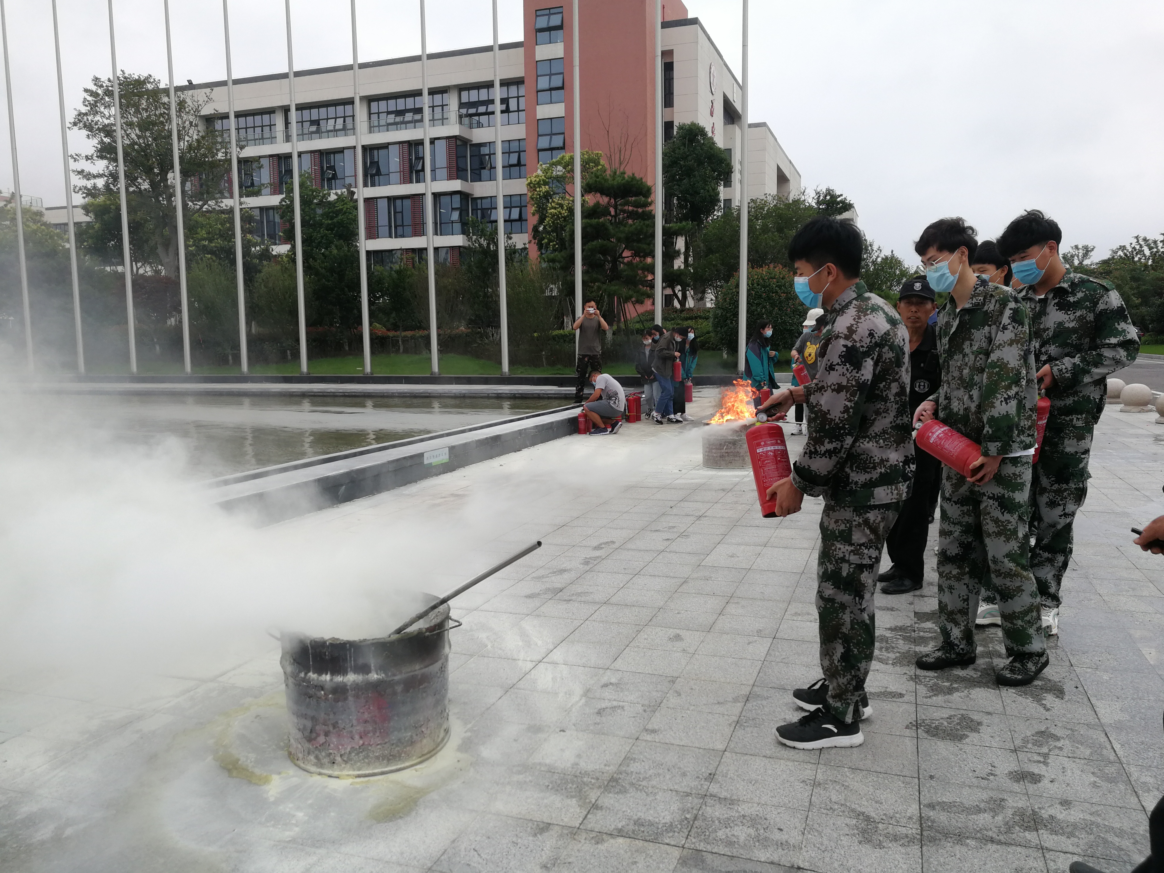 隨著警報(bào)響起,在校師生緊而有序地跑向疏散集結(jié)點(diǎn)。消防隊(duì)員迅速趕赴現(xiàn)場處置,第一時(shí)間將兩把水槍對準(zhǔn)模擬火點(diǎn)進(jìn)行快速滅火。演練結(jié)束后,示范區(qū)消防大隊(duì)指導(dǎo)員江鐵對人員疏散、初期火災(zāi)撲救作了點(diǎn)評,并提出了改進(jìn)措施。