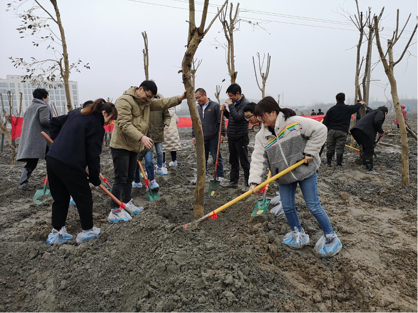 黨員同志們分工協(xié)作,揮鍬鏟土、扶苗填坑,齊心協(xié)力讓數(shù)十株樹苗在高鐵新城“安家落戶”,一排排栽好的樹苗挺立在和煦春風里,煥發(fā)勃勃生機。