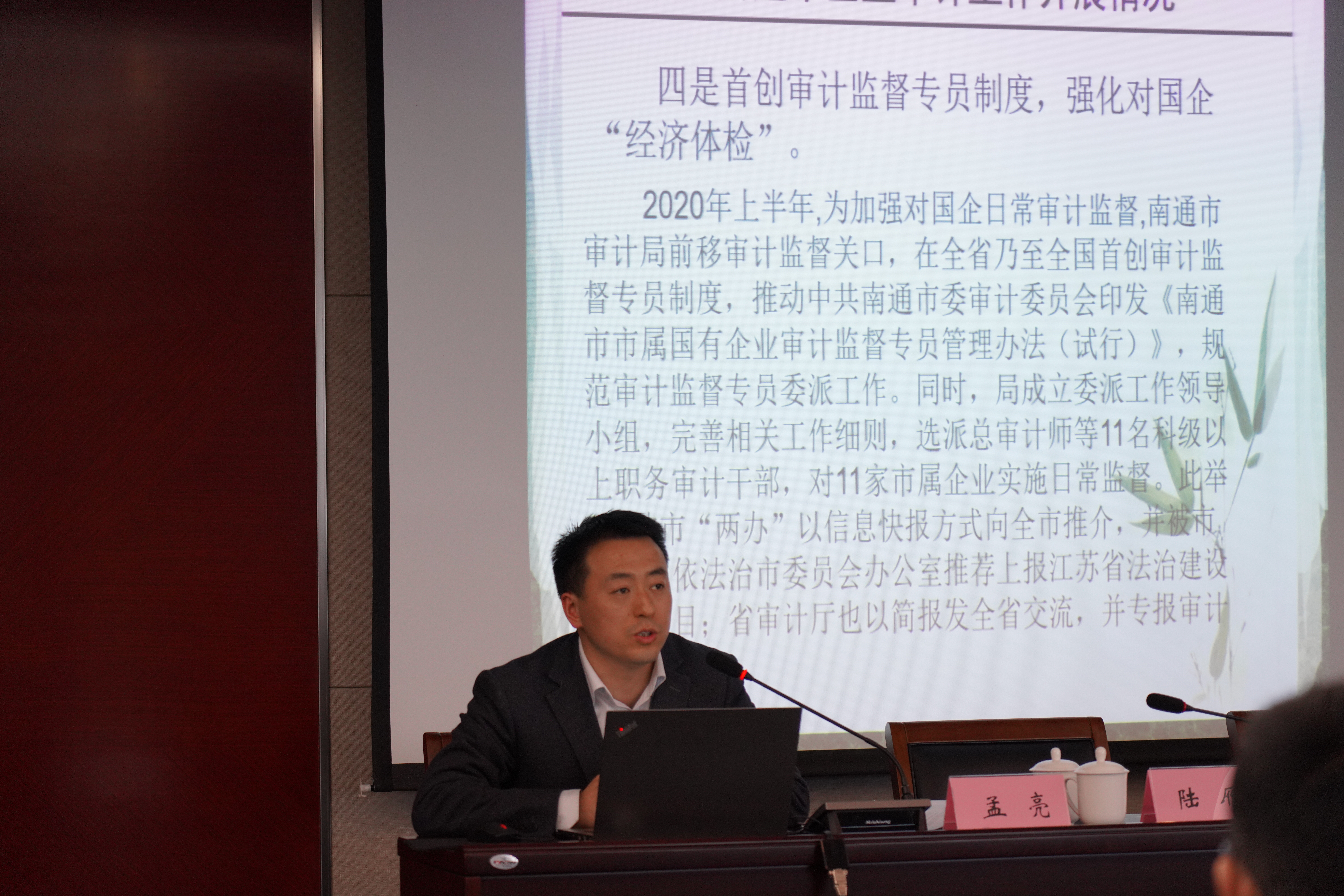 企業(yè)審計(jì)處處長(zhǎng)孟亮,為大家作《國(guó)有企業(yè)審計(jì)簡(jiǎn)介》講座,他結(jié)合實(shí)際案例著重介紹了南通企業(yè)審計(jì)開(kāi)展情況、國(guó)有企業(yè)審計(jì)的發(fā)展和總體要求、國(guó)企領(lǐng)導(dǎo)經(jīng)濟(jì)責(zé)任審計(jì)的方法和重點(diǎn)、做好國(guó)企領(lǐng)導(dǎo)經(jīng)濟(jì)責(zé)任審計(jì)的關(guān)鍵點(diǎn)等方面。
