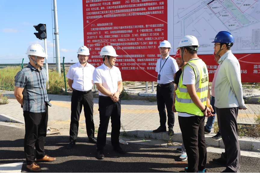 江宏一行深入實(shí)地查看了江安路道路工程、三夾沙東港池開挖工程的安全生產(chǎn)情況,聽取了在建項目安全生產(chǎn)工作落實(shí)情況的匯報,詳細(xì)了解了各在建項目迎接“雙節(jié)”的安全保障措施。